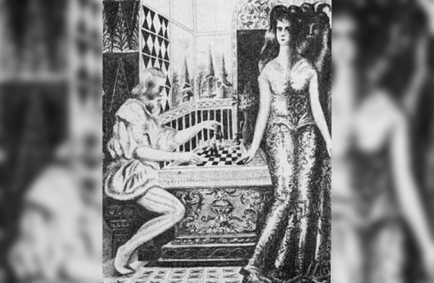 Un alarido de odio sale de la boca grana del demonio. Su belleza se desvanece bajo una horrida metamorfosis. Alcanza a maldecir a su amante: “¡Morirás envenenado por tus enemigos!” y se desvanece dejando al ajedrecista entre una humareda, en medio de ruinas donde las ratas devoran cadáveres. El sueño se ha esfumado. ¿Qué sucedió?