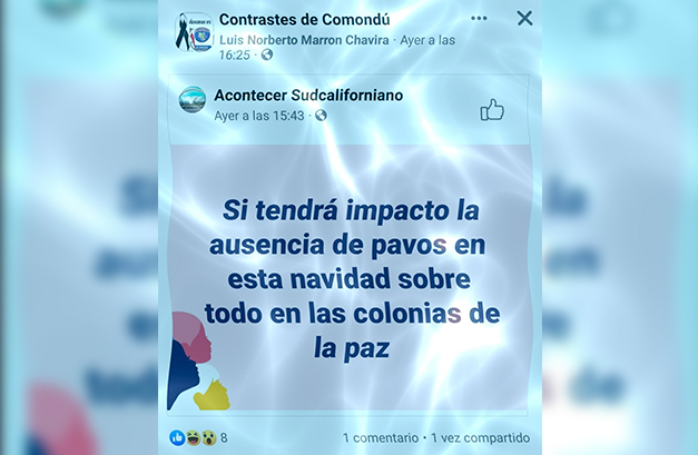 Ya en la resaca de un austero fin de año, esta Navidad parece que no se caracterizará por la acostumbrada presencia de la tamaliza de pavo, la «pavada», el pavo horneado y otras confecciones que los sudcalifornianos hemos ido añadiendo a nuestro habitual menú navideño de sopa fría, frijoles y birria, en un intento por emplear la congelada proteína asistencial.