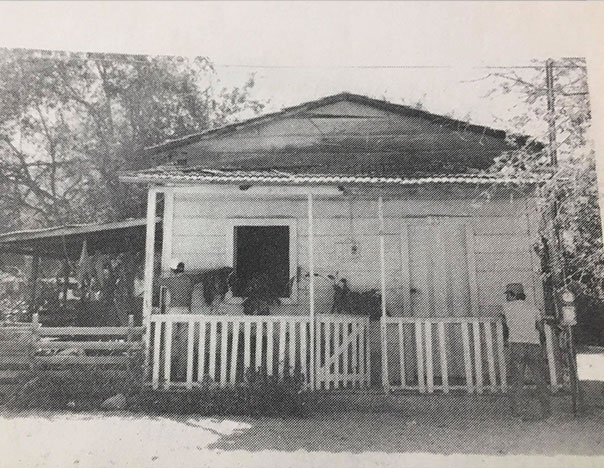 La fachada tiene dos vanos, un corredor al frente con enrejado de madera, la construcción original constaba de dos habitaciones, una cocina y piso de madera.