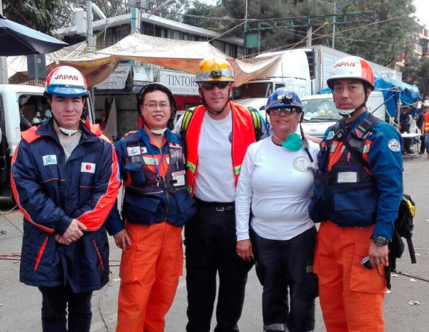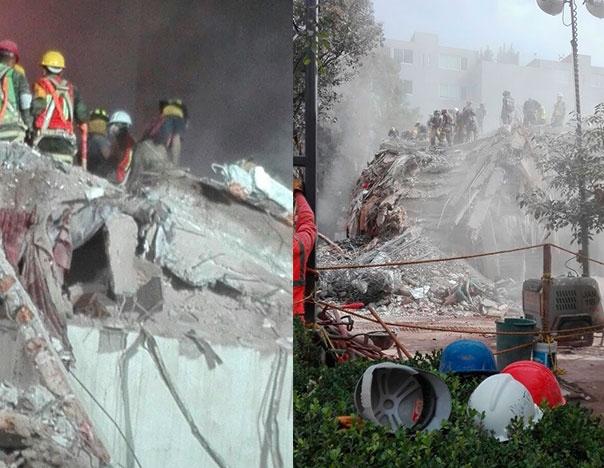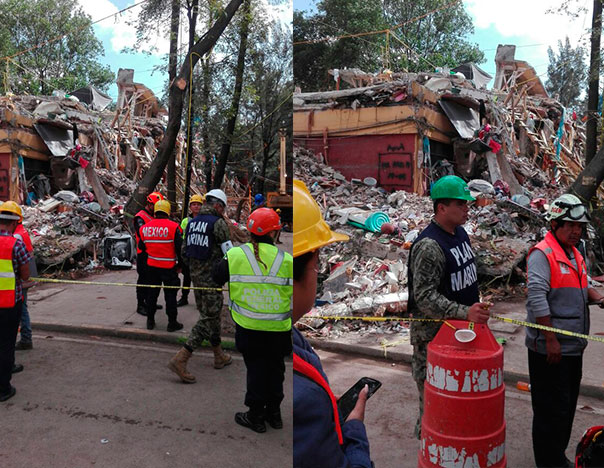 «Durante mi estadía que fue de diez días, rescatamos a nueve personas: ocho desgraciadamente sin vida, una con vida, dos perros y un gato. Uno de los rescates que me tocó atender fue así: llegamos a un edificio en el cual se encontraba un padre de familia pidiendo el apoyo para sacar a su hijo de 17 años que se encontraba entre los escombros del edificio a punto de colapsar, dándonos información de que el joven aún se encontraba con vida, pues tenía comunicación con él a través de un celular, así también ayudándonos con la ubicación del mismo. Estuvimos trabajando varios días tirando escombros, ya el gobierno quería ‘meter la pluma’ para tirar el edificio porque ya habían pasado varios días y nosotros nos opusimos que nos dieran permiso unas horas más, estuvimos trabajando día y noche tumbando escombros. Cuando por fin lo encontramos un día en la madrugada —eran por ahí de la 5 de la mañana—, dimos con el cuerpo pero éste yacía sin vida: se había desangrado el muchacho. Esto me marcó muy fuerte, más al dar la noticia al papá que siempre se mantuvo día y noche esperando resultados; cuando le mostramos el cuerpo de su hijo se derrumbó, sin, embargo nos dio las gracias».