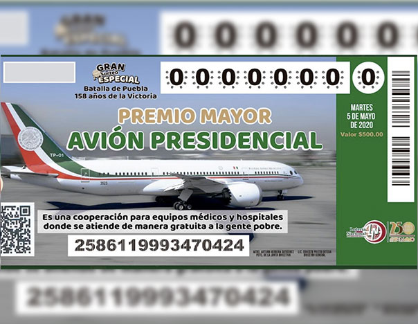 Ciudad de México (CdMx). Rifar un avión que costó 218 millones de dólares, el equivalente a 2,963 millones de pesos al tipo de cambio de 2012, para que con una ganancia de 3,000 millones de pesos —obtenida por la venta de seis millones de cachitos de lotería a quinientos pesos cada uno—, se salde la deuda con el propietario del mismo, que es la institución bancaria Banobras, y que con el remanente monetario de la liquidación se adquieran equipos médicos y para infraestructura hidráulica puede sonar a una ocurrencia, y sí que lo es.