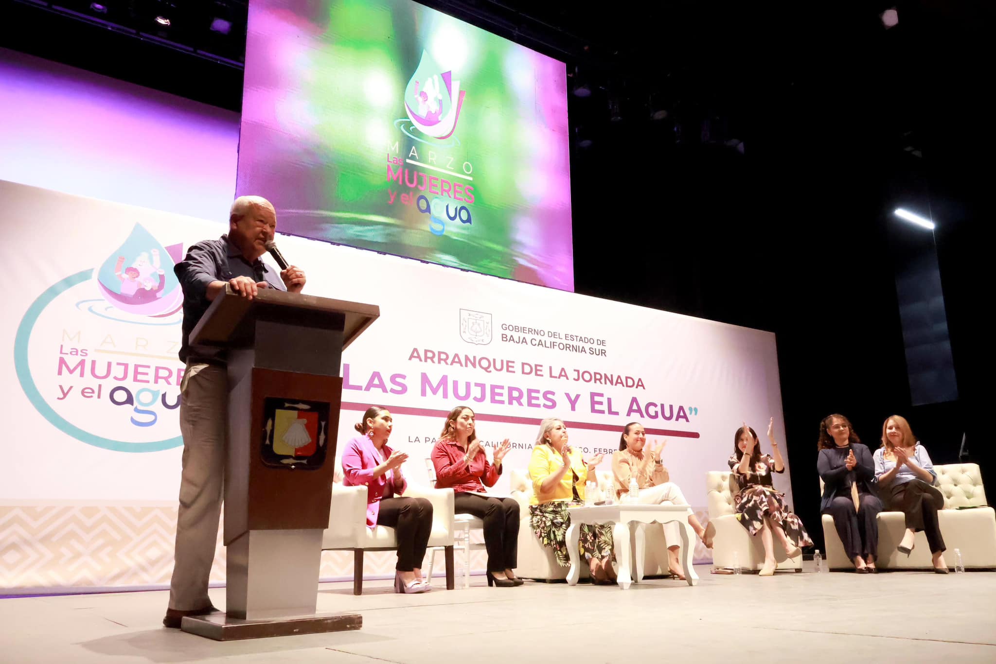 La Paz, Baja California Sur (BCS).A través de un comunicado de prensa por parte del Gobierno del Estado se informó que, en el arranque de la jornada Marzo, las Mujeres y el Agua, el gobernador Víctor Manuel Castro Cosío reconoció la unión de esfuerzos de instituciones y sociedad civil, para que durante el mes de marzo se fortalezcan actividades encaminadas a un uso más eficiente del agua, en donde las mujeres históricamente han sido protectoras del vital líquido y a poner un alto a la violencia de cualquier índole hacia este sector.