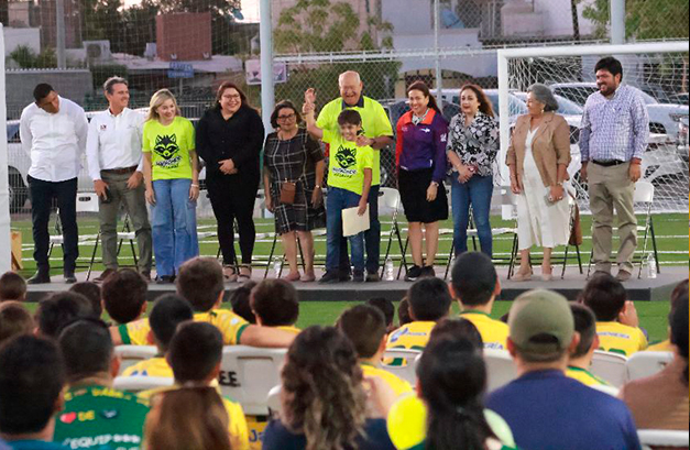 La Paz, Baja California Sur (BCS). Este lunes, el gobernador Víctor Manuel Castro Cosío hizo entrega de la rehabilitación integral del campo de fútbol 7 en la Unidad Deportiva Nuevo Sol, en la ciudad de La Paz, con una inversión estatal de 3.63 millones de pesos.