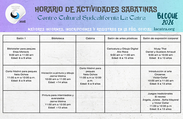 El proceso de inscripción se encuentra habilitado de manera digital a través de la página oficial de Facebook: Centro Cultural Sudcalifornia La Catra, donde las personas interesadas pueden consultar información detallada sobre talleres, edades recomendadas y horarios.