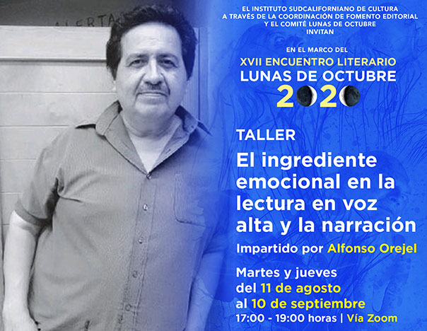 La Paz, Baja California Sur (BCS). Con el apoyo del Gobierno del Estado, la Secretaría de Cultura, el Instituto Sudcaliforniano de Cultura (ISC) y la Coordinación de Fomento Editorial, estarán llevando a cabo el taller “El Ingrediente Emocional en la Lectura en Voz Alta y la Narración”, el cual será impartido por Alfonso Orejel, informó Christopher Amador Cervantes titular del ISC.