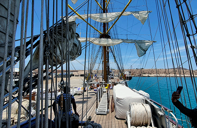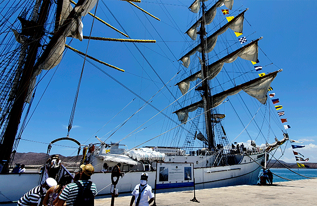 La Paz, Baja California Sur (BCS). El pasado sábado 24 de julio, tuve la oportunidad de visitar el imponente Buque Escuela Velero Cuauhtémoc. Mucho había escuchado de él por boca de varios amigos que habían tenido la oportunidad de visitarlo en el puerto de Acapulco, también de algunos oficiales egresados de la Heroica Escuela Naval Militar, los cuales referían con emoción el semestre que habían cursado navegando en este hermoso buque, donde habían aprendido muchos aspectos prácticos de navegación y aplicaron otros tantos que habían aprendido en las aulas.